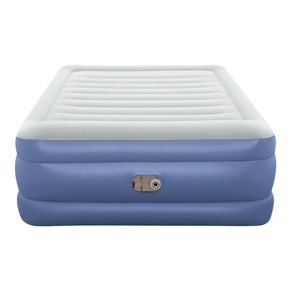 Bestway Queen Air Mattress - Inflatable Bed, 61cm, Blue, Flocked Surface, Built-in Pump, Indoor/Outdoor Use