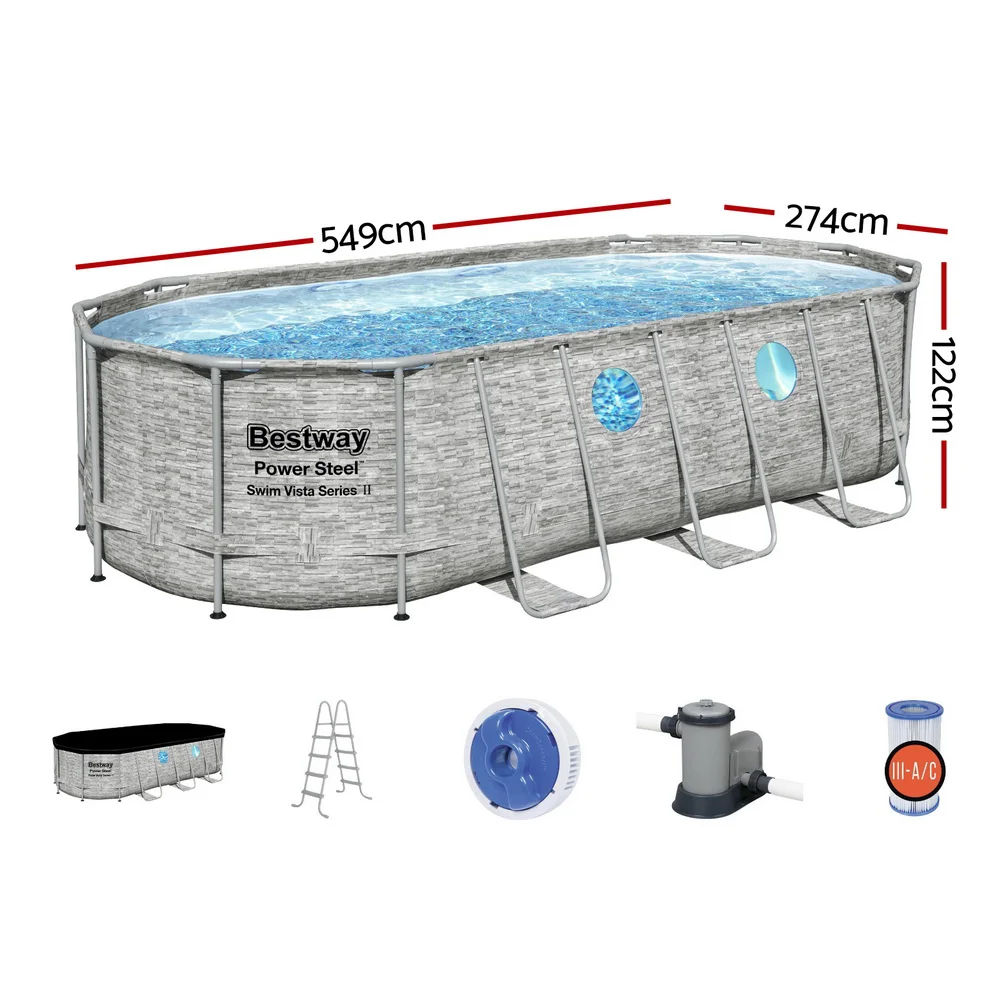 - Pool size: 549cm x 274cm x 122cm