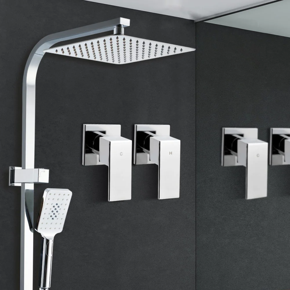 Cefito 10'' Rain Shower Head Set Square High Pressure, Handheld, Solid Brass, Chrome, Twin Taps, 5 Yr Warranty