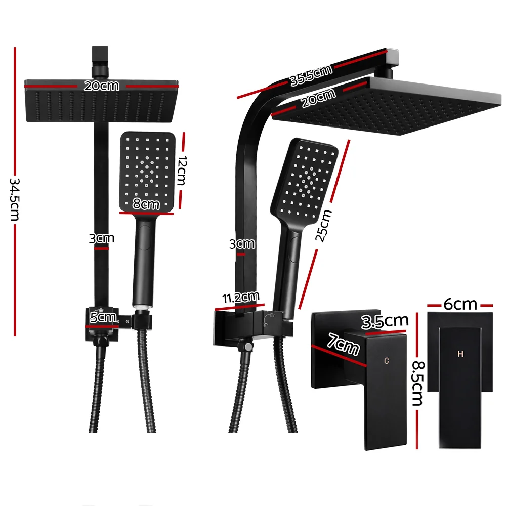 Upgrade your bathroom with the Cefito 8'' Rain Shower Head Set Handheld Square High Pressure Twins Tap in striking matte black. Enjoy the luxury of a soothing 8” rainfall shower and the versatility of a three-spray pattern handheld head, perfect for targeted cleansing. Crafted from solid brass with a multi-layer matte black finish, the set boasts a drip-free ceramic cartridge and a flexible 1.5m stainless steel hose. WaterMark certified and WELS approved, this set delivers style, durability, and performance in one sleek package.
