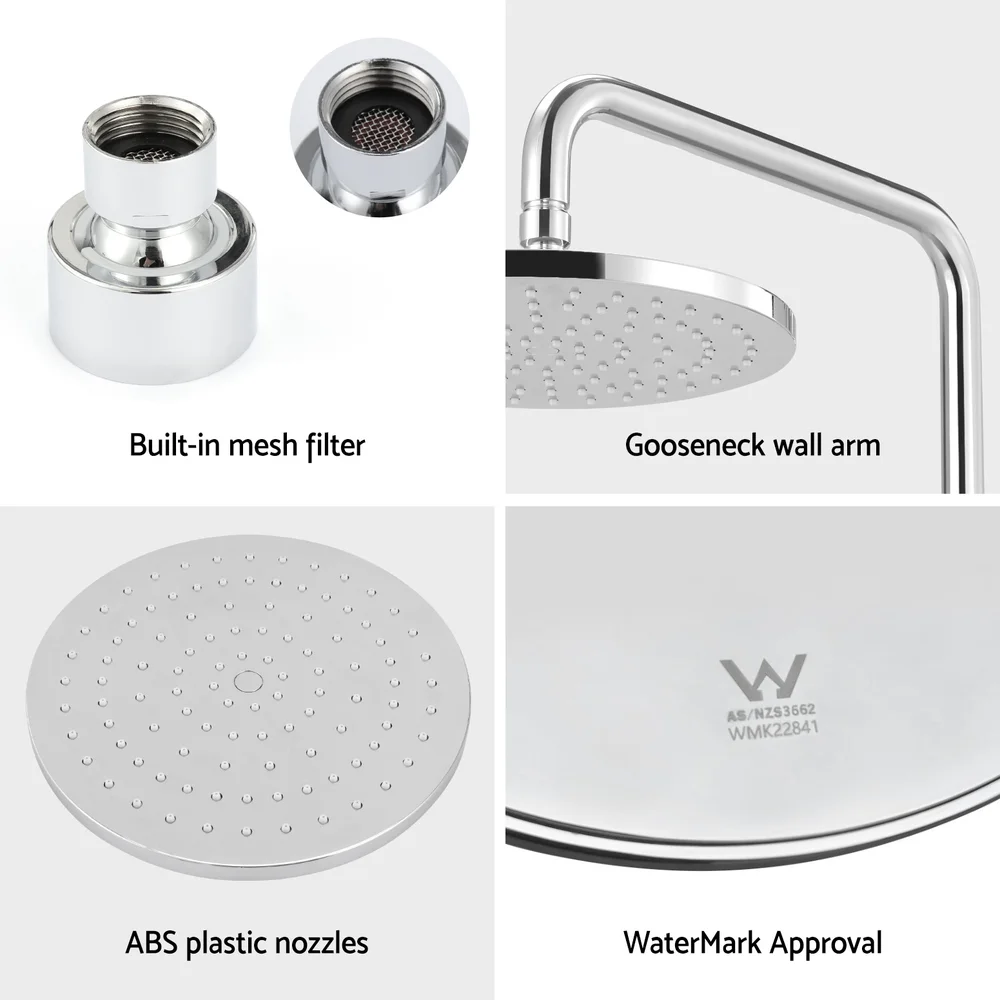 Transform your daily routine with the Cefito 9" Rain Shower Head. Designed for an invigorating, high-pressure rainfall experience, this fixed overhead shower features a durable, solid brass body with a sleek chrome finish. The built-in water-saving filter and 360° swivel offer both efficiency and flexibility, while ABS nozzles ensure easy cleaning. Delivering a satisfying 9L/min flow rate and compliant with Australian standards, Cefito brings luxury and style into your bathroom every day.