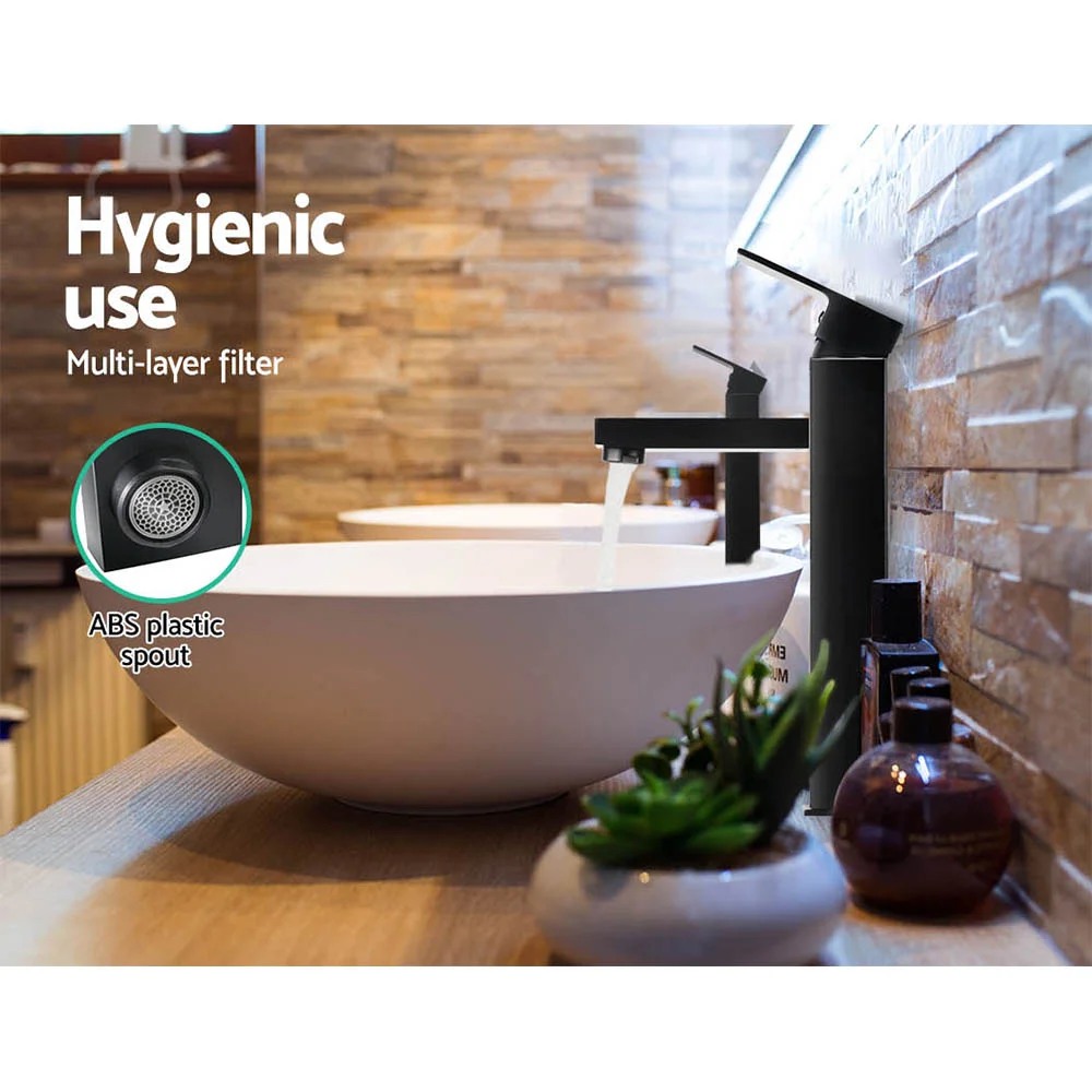 Transform your bathroom with the sleek Cefito Bathroom Basin Mixer Tap. This tall, square faucet, finished in elegant matte black, is crafted from robust 304 stainless steel and solid brass. Designed for efficiency and flexibility, it includes a 35mm drip-free ceramic cartridge for lasting durability. Watermark-certified and WELS-approved, it meets stringent Australian standards. Easy to install, it fits sinks with a 35mm-38mm hole diameter and supports hot and cold water use.