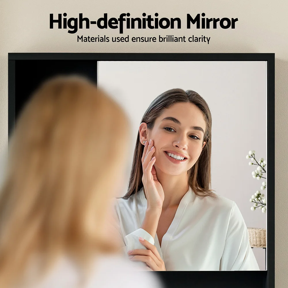Transform your bathroom with the Cefito Bathroom Mirror Cabinet, a perfect blend of style and functionality. This sleek black cabinet features a high-definition mirror that offers excellent reflection while concealing ample storage space with adjustable shelves for your toiletries and personal items. Constructed from water-resistant PB melamine, it stands resilient against humidity, maintaining its modern elegance. The seamless door with hidden handles enhances its minimalist design, making it easy to install and maintain. Ideal for organising essentials, this wall-mounted unit is both practical and stylish, elevating your bathroom decor effortlessly.