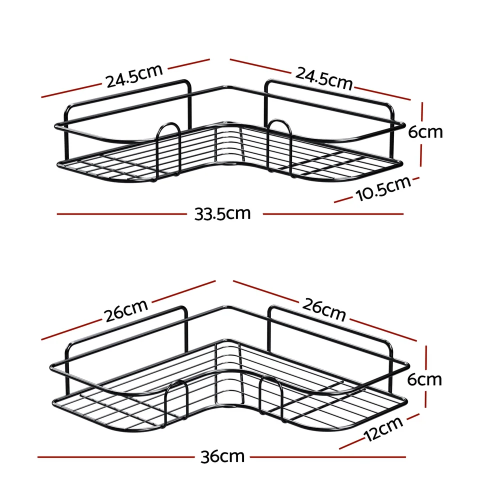 Cefito Bathroom Corner Shelf Rack, Carbon Steel, Black, 36x26x6cm, Rustproof, Easy Install, 2-Pack, 1-Year Warranty