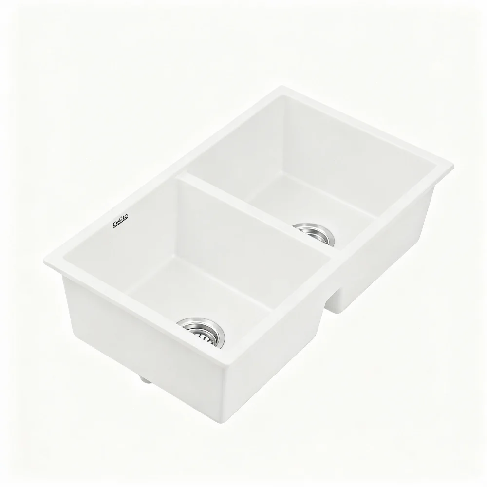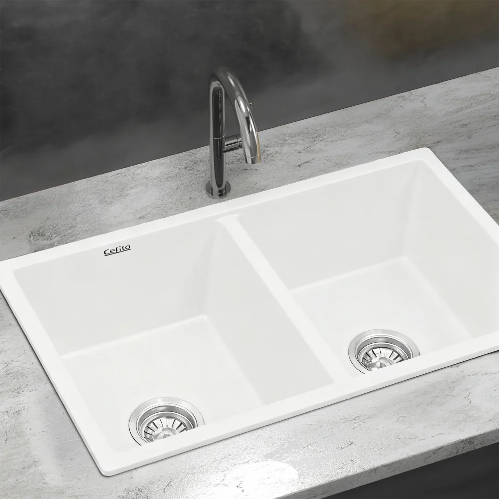 Cefito 77x45cm White Granite Double Bowl Kitchen Sink - Scratch & Heat Resistant, 10-year warranty, Hygienic, Durable