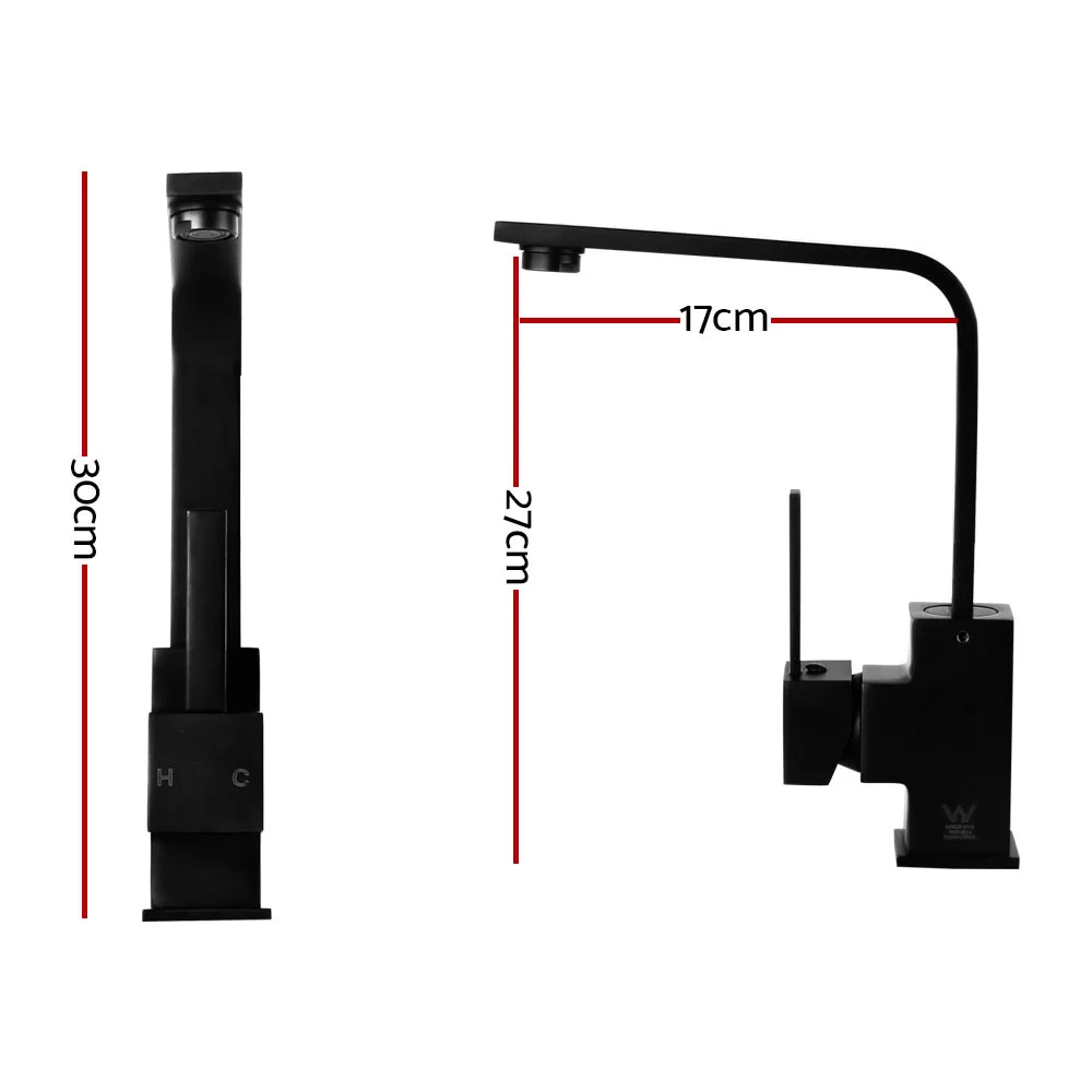 Cefito Kitchen Mixer Tap, Brass & ABS, Matte Black, 33x19.5cm, Swivel Faucet, Watermark & WELS Certified, Easy Install