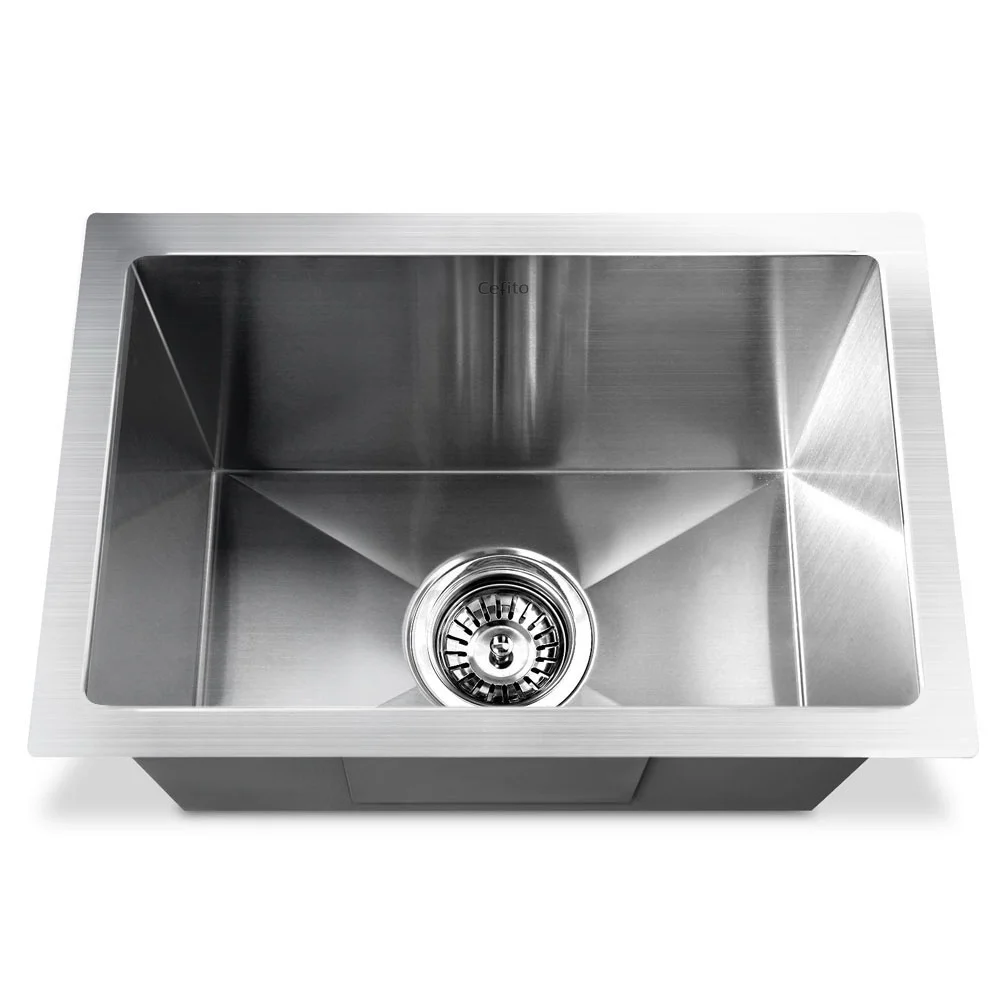 Cefito 53x50cm Handmade Stainless Steel Kitchen Sink, Single Bowl, R10 Corners, Soundproof Pads, Satin Finish