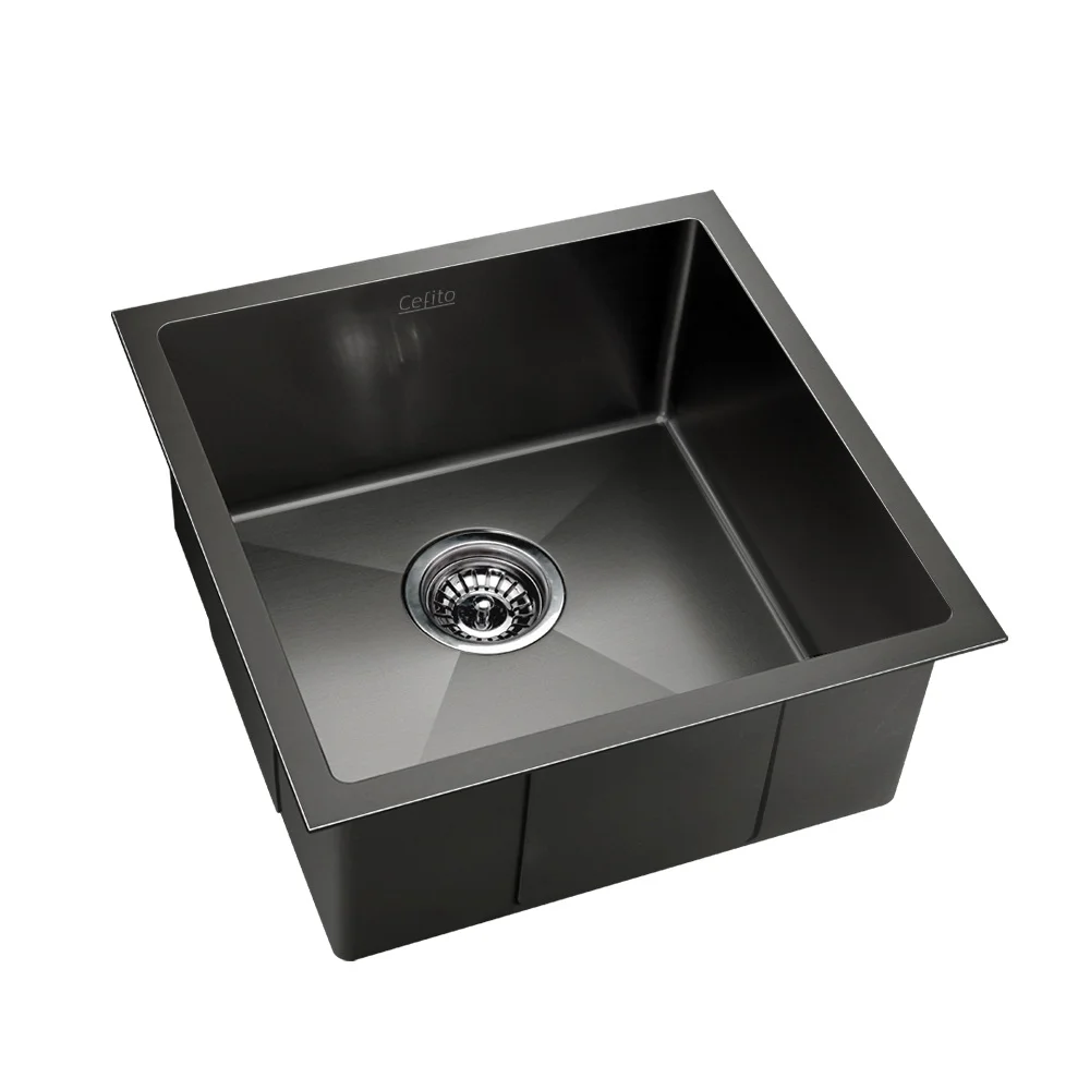 Cefito Kitchen Sink, Stainless Steel, 51x45CM, Black, Scratch-Proof, Anti-Bacterial, Easy Drainage, Sound-Deadening