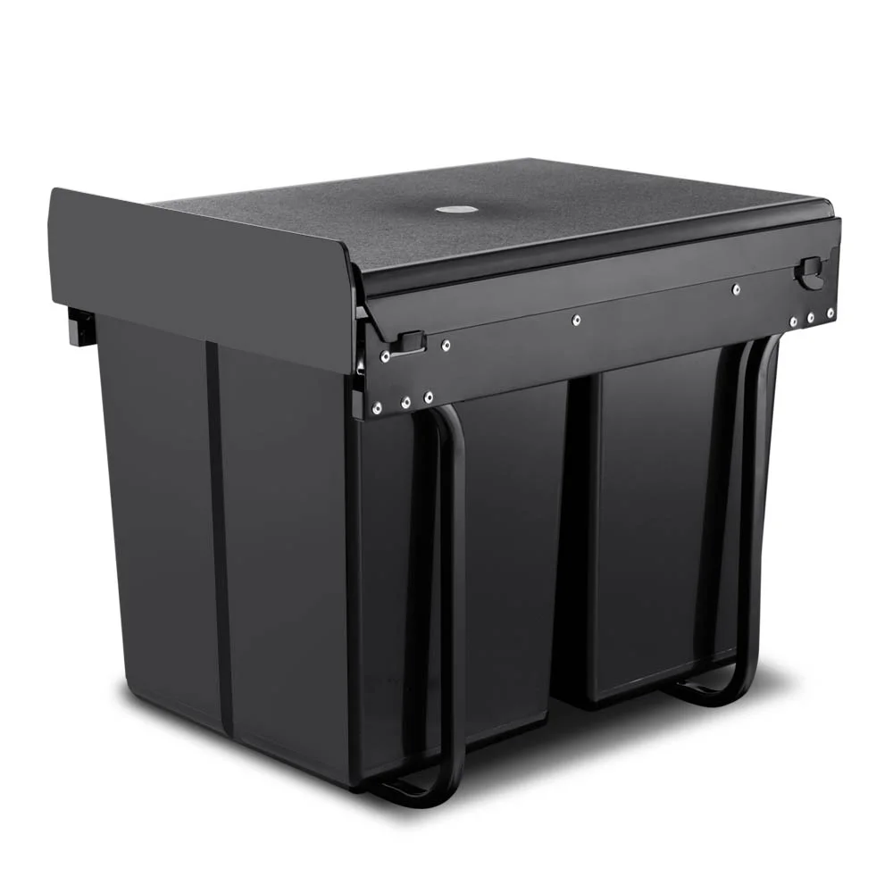 Cefito 2x20L Pull-Out Kitchen Bin, Black, Dual Compartment with Lids, Steel Frame, Smooth Slide, Easy Install & Clean