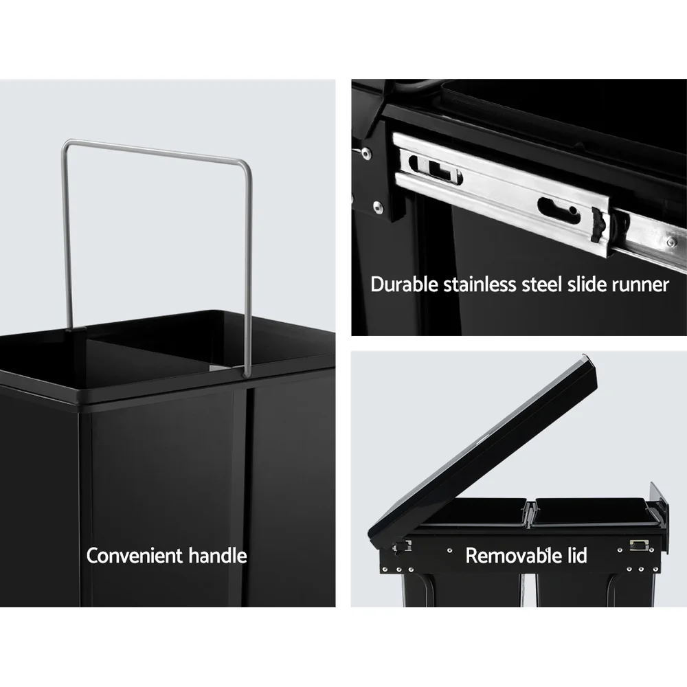 Cefito 30L Pull Out Double Basket Bin - Black, 2x15L Capacity, ABS & Polypropylene, Easy Install, Space-Saving Design