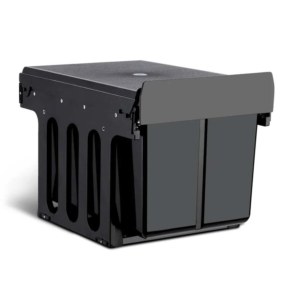 Cefito Pull-Out Bin 30L Kitchen Double Basket - 2x15L, Grey, ABS & Polypropylene, Space-Saving, Easy Install & Clean