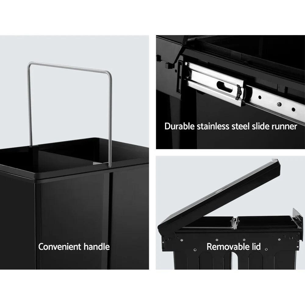 Cefito 2x20L Pull-Out Kitchen Bin, Black, Dual Compartment with Lids, Steel Frame, Smooth Slide, Easy Install & Clean