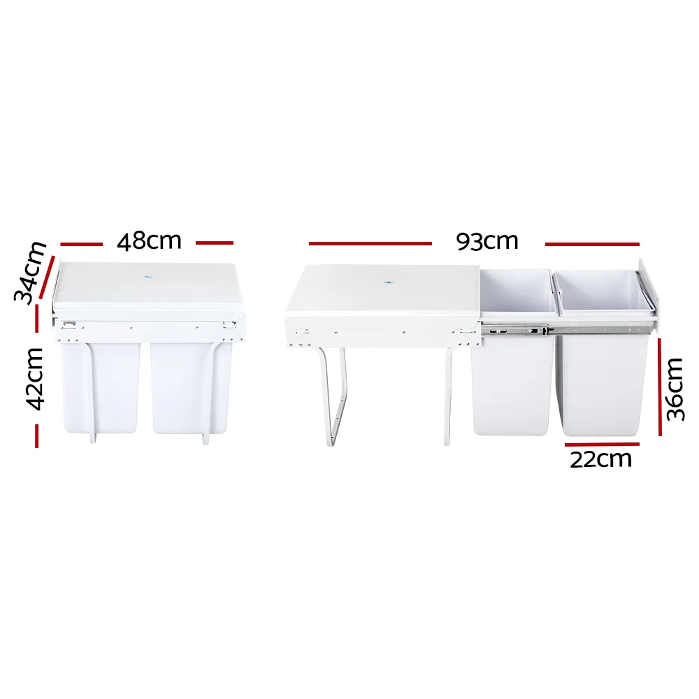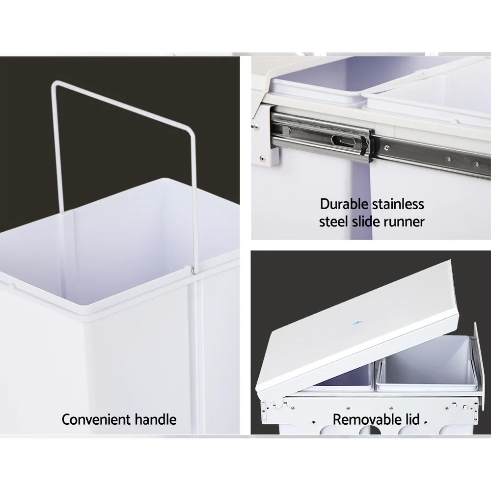 Cefito 40L Dual Pull Out Bin for Kitchen, White - 2x20L Compartments, Heavy-Duty Steel Frame, Space-Saving Design