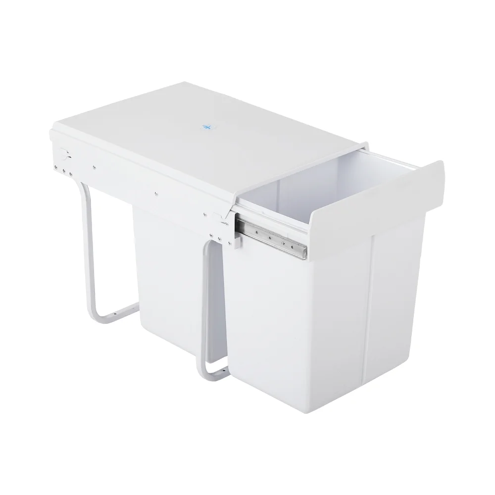 Cefito Pull Out Bin Kitchen Double Basket 2x15L White, Concealed Waste Bin with Lids, Heavy Duty Runners, Easy Install