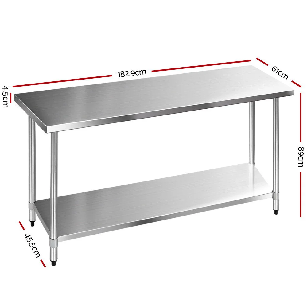 Cefito 1829x610mm Heavy Duty Stainless Steel Kitchen Bench, Adjustable Shelving, Corrosion Resistant, Easy Assembly