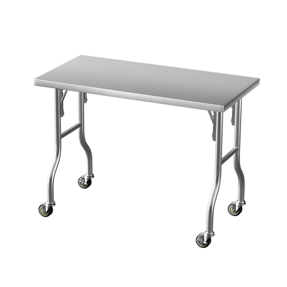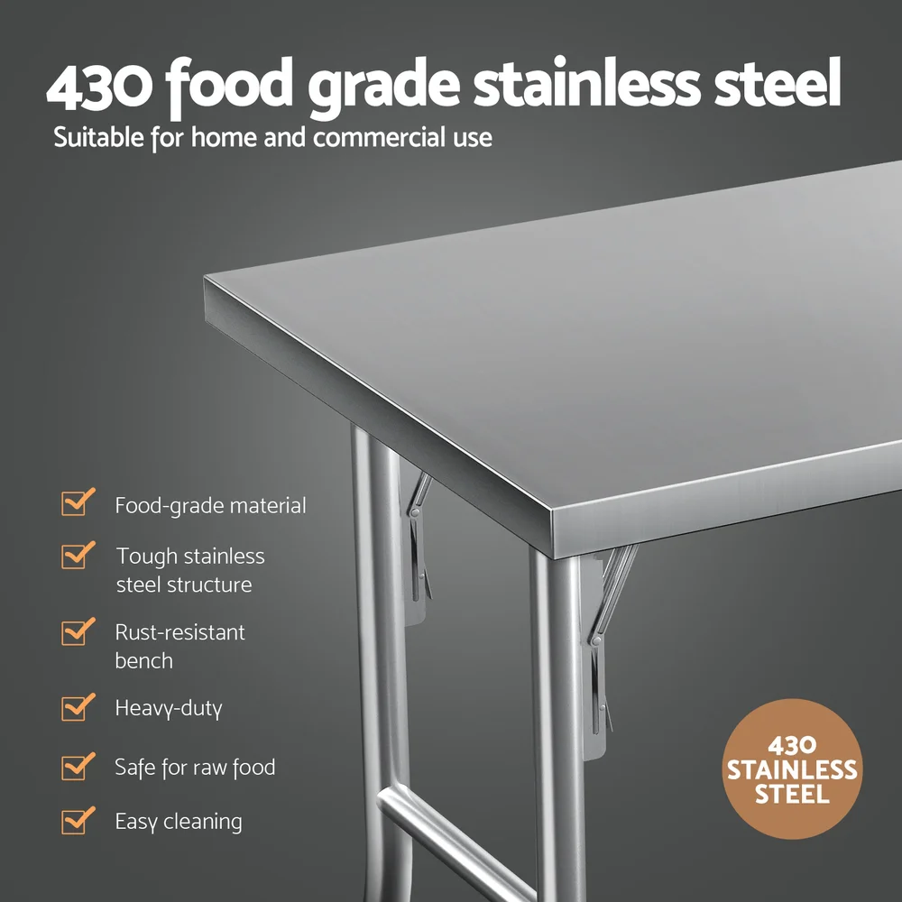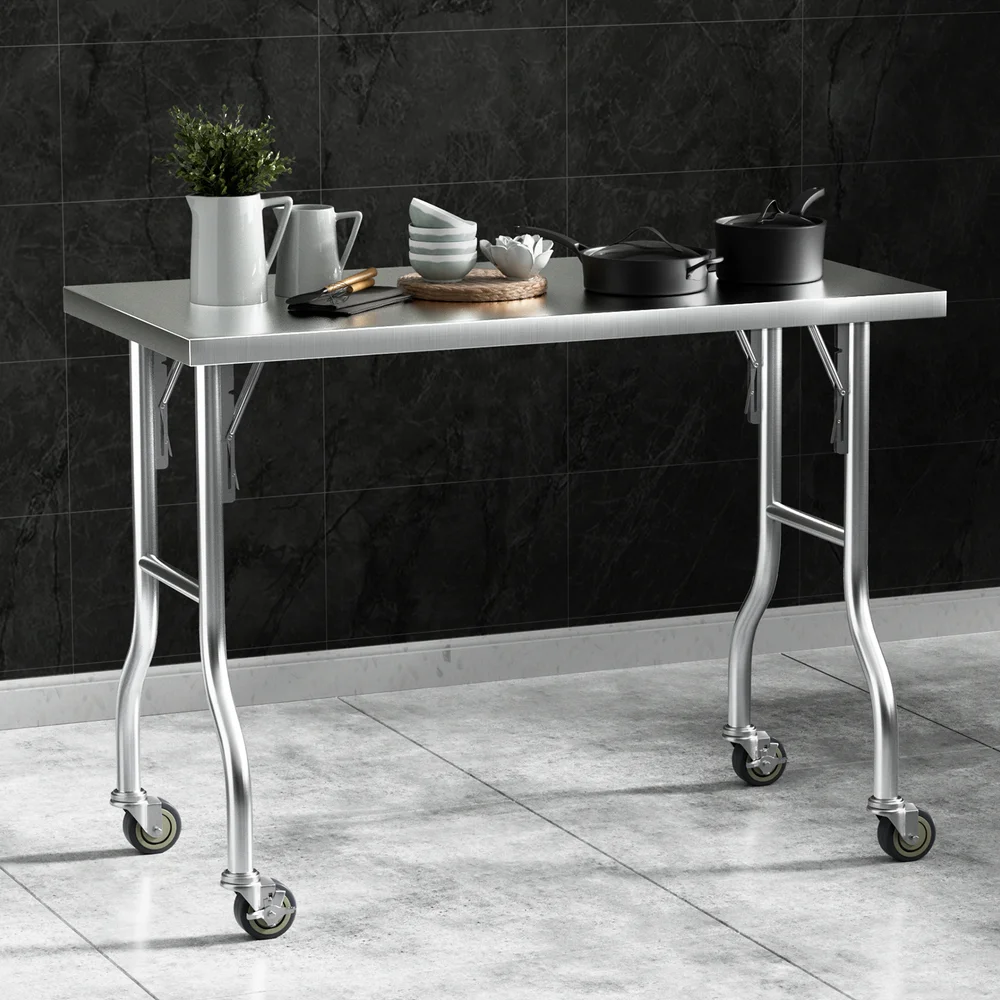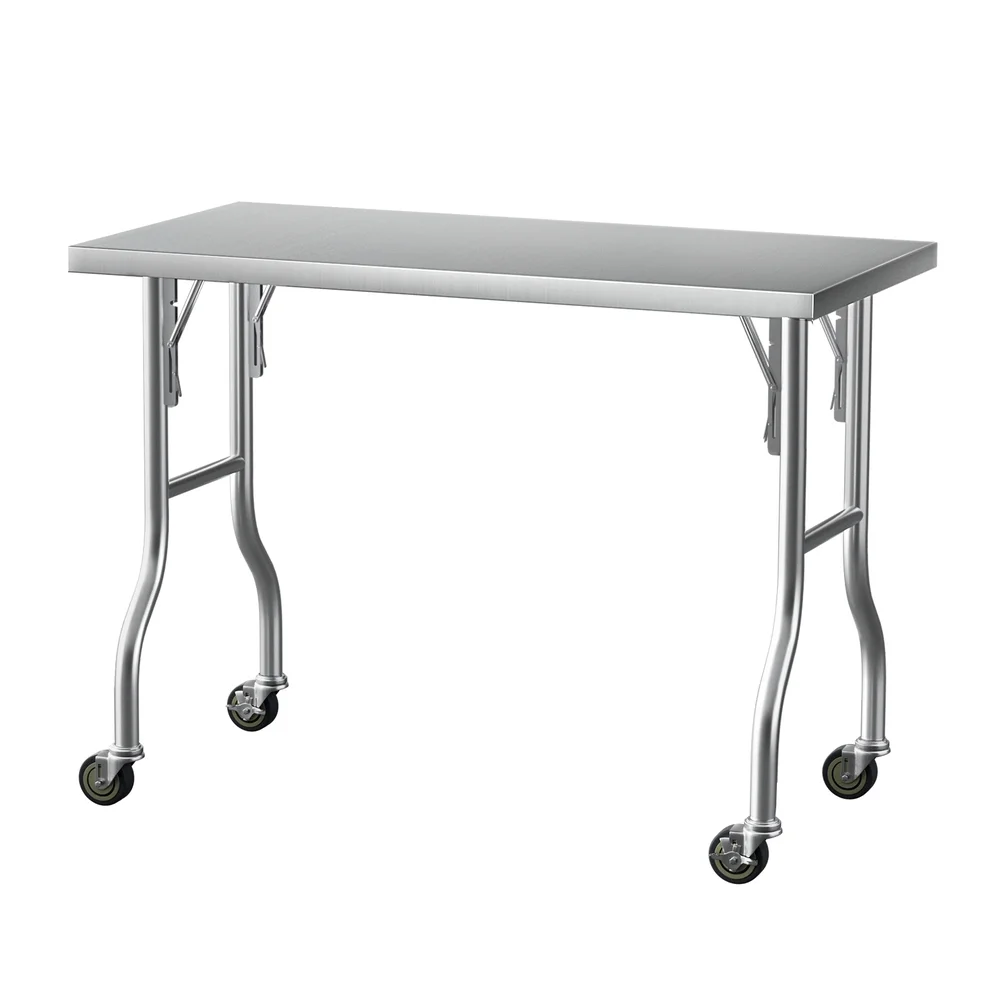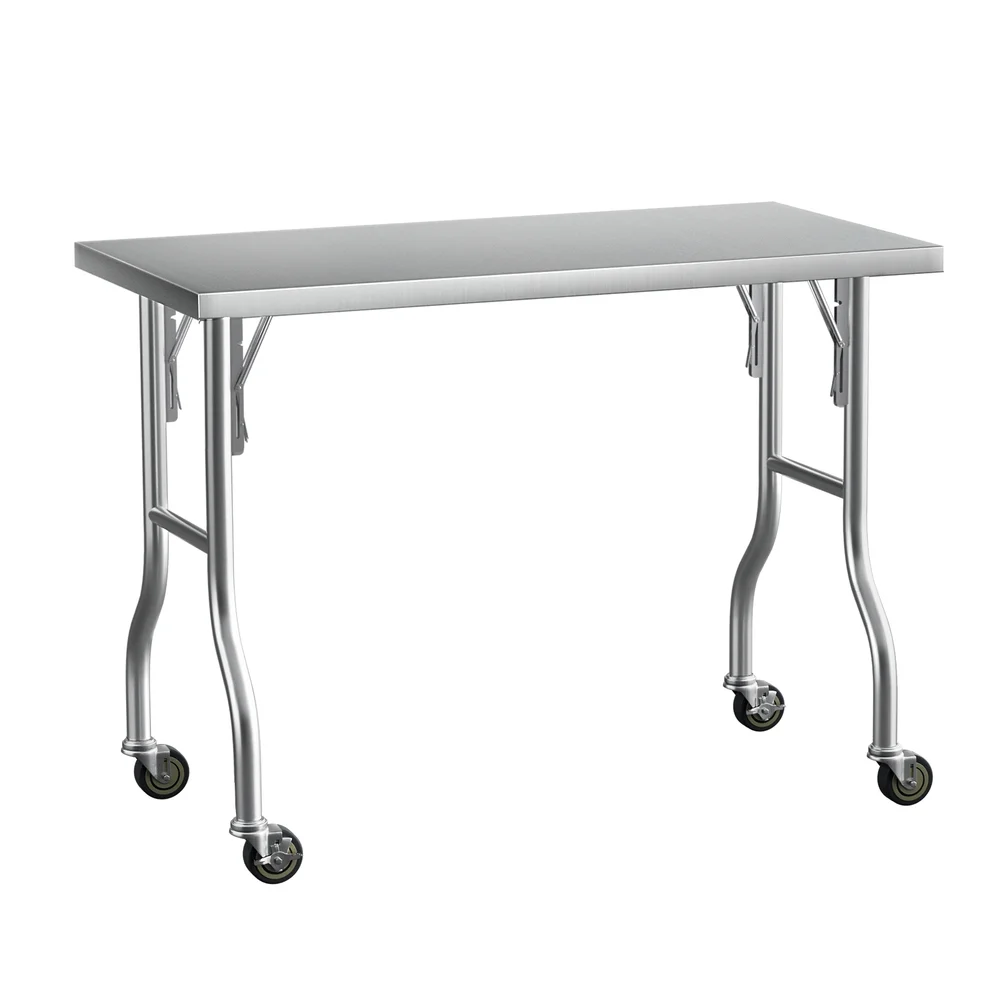 Cefito 430 Stainless Steel Kitchen Bench 122x61cm with Wheels | Foldable, Heavy Duty, Corrosion-Resistant, Easy Assembly