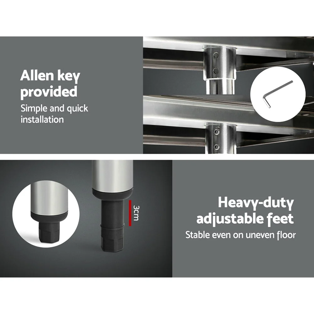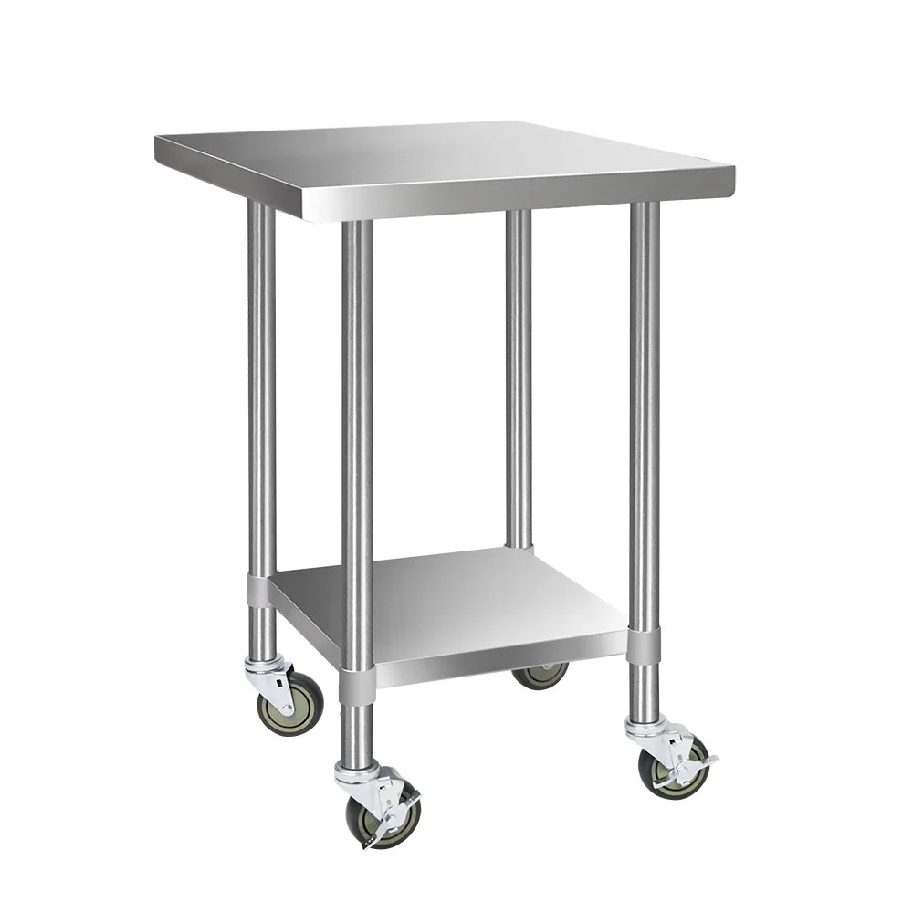 Cefito 760x760mm Stainless Steel Kitchen Bench with Wheels - Heavy Duty, Adjustable Shelves, Corrosion Resistant
