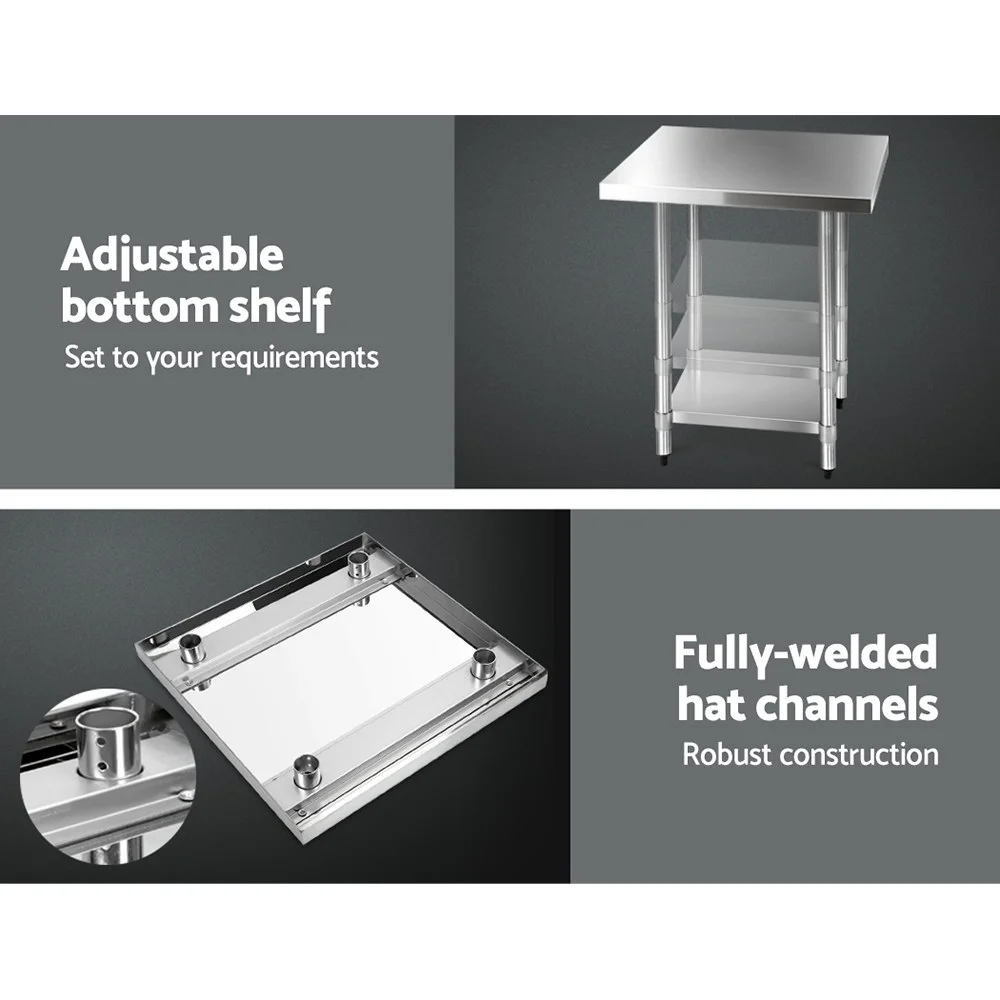Cefito 760x760mm Stainless Steel Kitchen Bench 430 - Heavy Duty, Corrosion Resistant, Adjustable Shelving & Feet