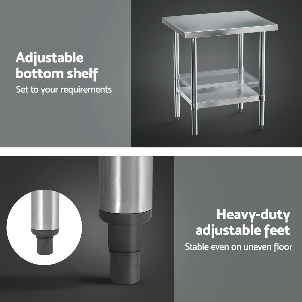 Cefito Stainless Steel Kitchen Bench Work Table 610x760mm, 430 Food-Grade, Adjustable Undershelf, 160kg Load