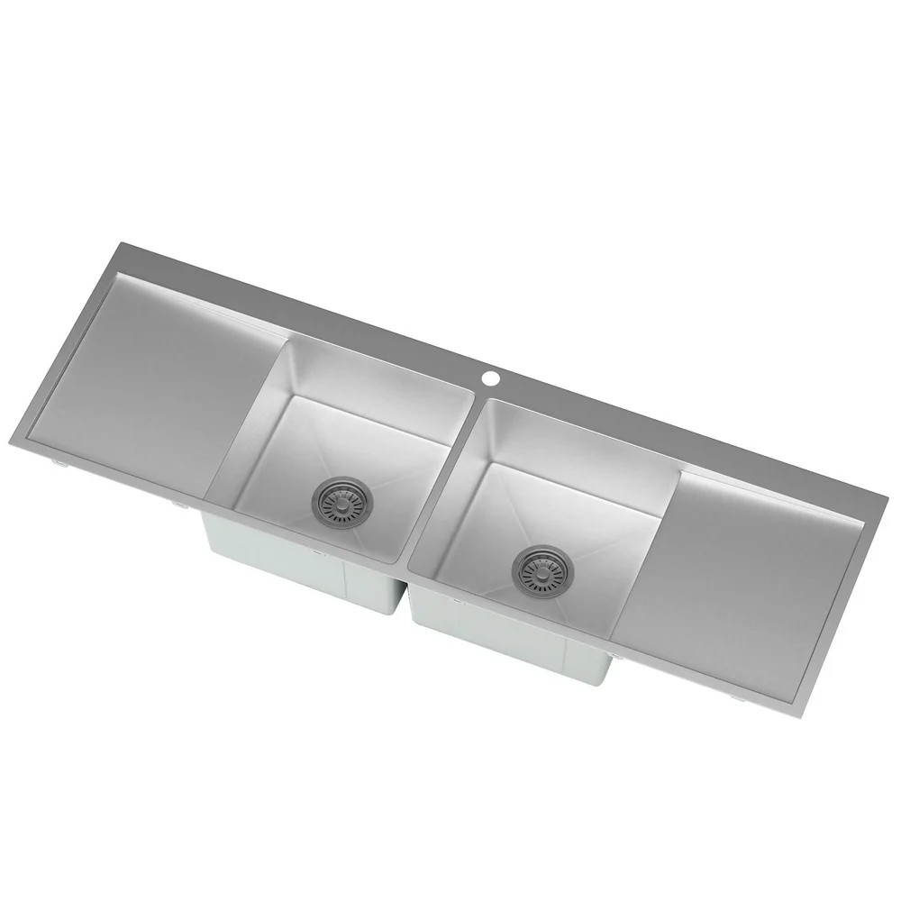 Cefito 155x50cm Stainless Steel Kitchen Sink Basin - Under/Flush/Top Mount, Sound-Deadening, R10 Rounded Corners