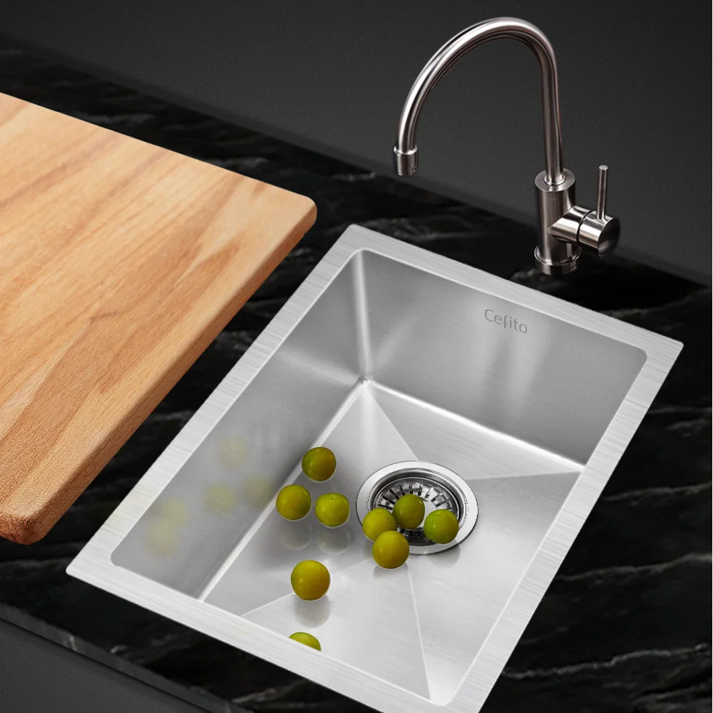 Cefito 53x50cm Handmade Stainless Steel Kitchen Sink, Single Bowl, R10 Corners, Soundproof Pads, Satin Finish