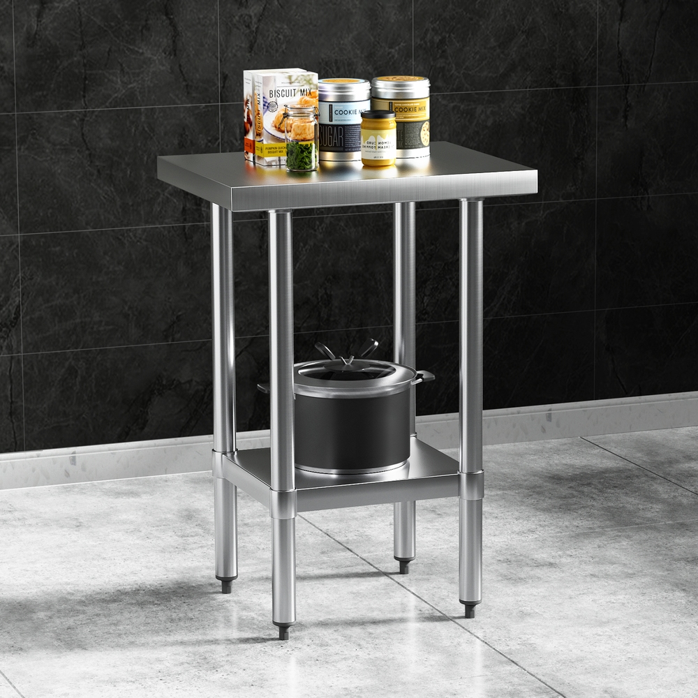 Cefito Stainless Steel Kitchen Work Bench 610x457mm - Durable 430 Steel, Adjustable Shelves & Feet, Easy Assembly