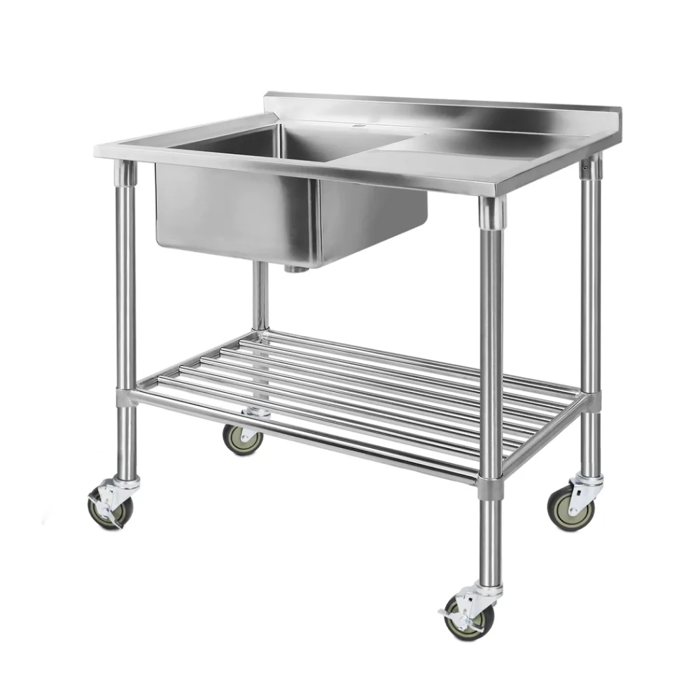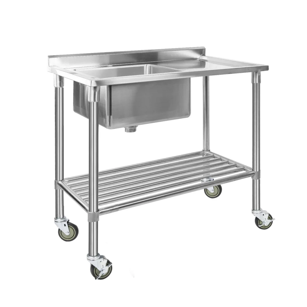 Cefito 304 Stainless Steel Sink Bench: Mobile Kitchen Workstation with Wheels, Adjustable Shelf, and 1-Year Warranty