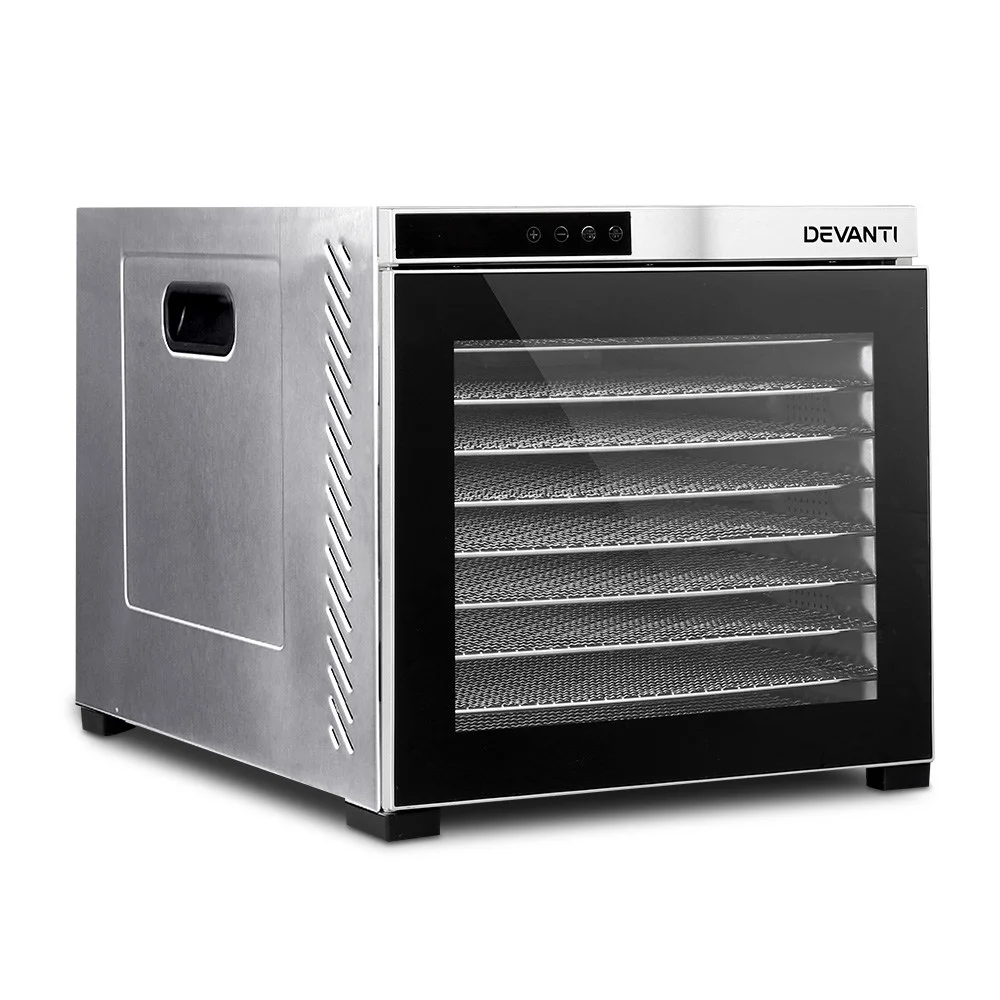 Devanti 10-Tray Stainless Steel Food Dehydrator with Glass Door, LED Controls, 850W, Adjustable Thermostat & Timer