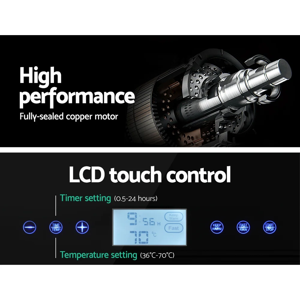Devanti 10-Tray Food Dehydrator with Stainless Steel Trays, LCD Touch Control, 35-75°C Adjustable Thermostat, 900W-1100W