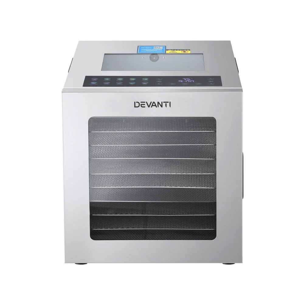Devanti 10-Tray Food Dehydrator with Stainless Steel Trays, LCD Touch Control, 35-75°C Adjustable Thermostat, 900W-1100W