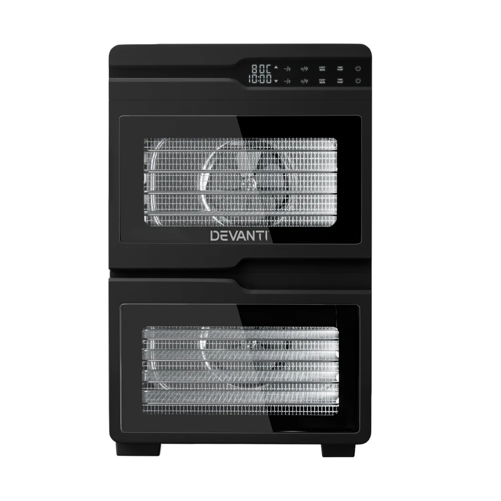 Devanti 10-Tray Food Dehydrator with Stainless Steel Trays, LCD Touch Control, 35-75°C Adjustable Thermostat, 900W-1100W