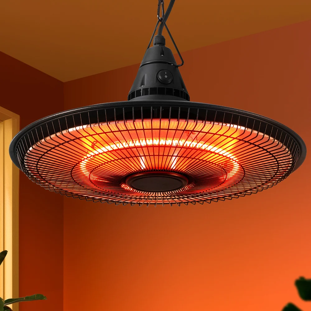 Devanti 1500W Hanging Infrared Patio Heater - IP65 Weatherproof, Adjustable Height, 360° Heat, Remote Control