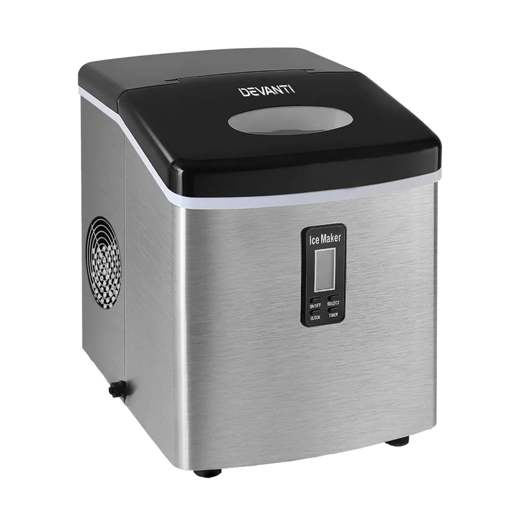 Devanti Stainless Steel Portable Ice Maker - 12kg Daily Capacity, Quick 6-13 Min Cycle, Compact Countertop Design