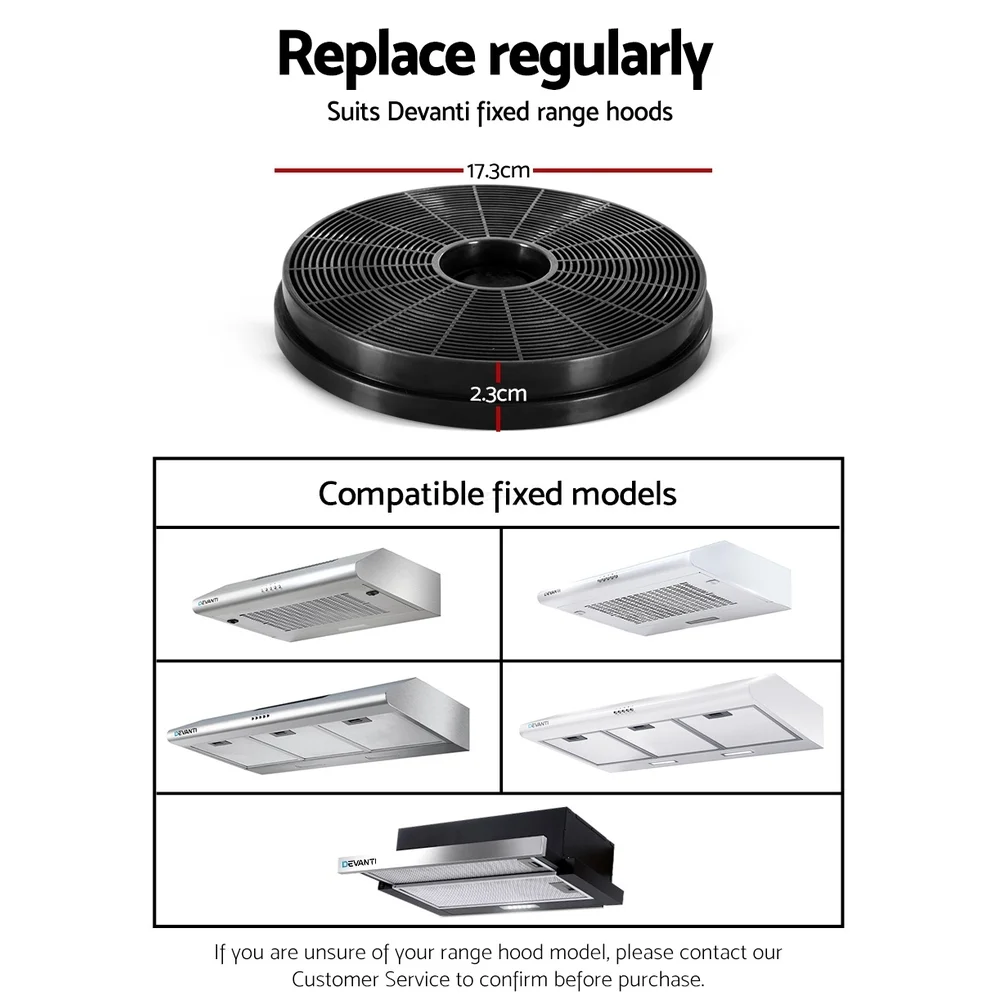 Devanti Range Hood Carbon Charcoal Filters Replacement 17cm 2 Pack, Activated Charcoal, Easy Install, Odour Removal
