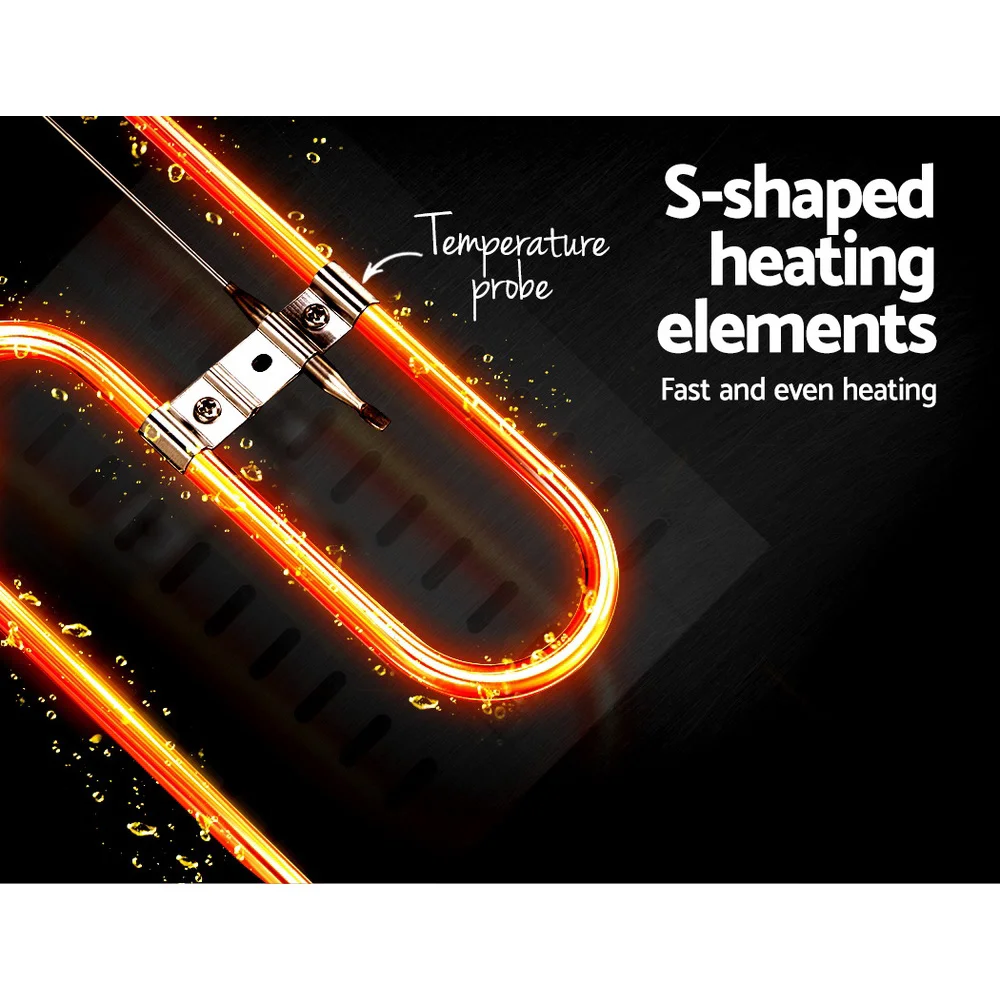 Introducing the Devanti 20L Electric Commercial Deep Fryer with Double Baskets, a kitchen essential for achieving the perfect crisp every time. This premium fryer features a power-saving auto thermostat, a quick-heat function, and a hinged removable oil-heating plate, making it versatile and efficient. With double frying compartments and individual temperature controls, you can cook multiple dishes to perfection simultaneously. Designed with a durable stainless steel body and non-slip rubber feet, it ensures stability and safety. Surprise your family and friends with your excellent cooking, and make this Devanti deep fryer a staple in your kitchen today!