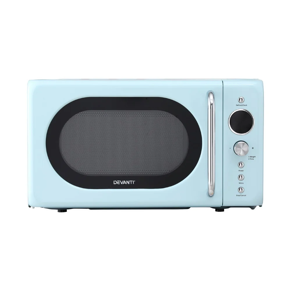 Devanti 20L Microwave Oven Blue 800W Digital Control, 8 Auto Menus, Timer, Defrost, Child Lock, LED Display
