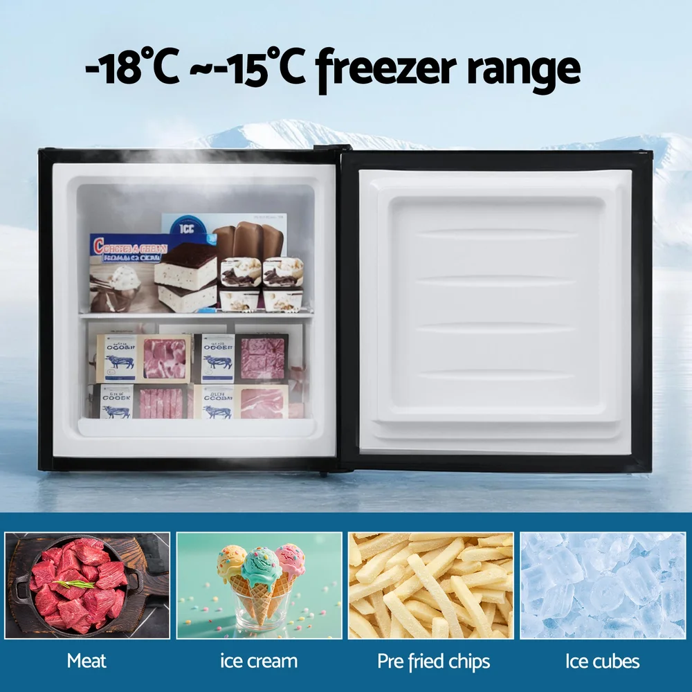 Introducing the Devanti 31L Small Upright Freezer, the ultimate compact solution for your cooling needs. Perfect for homes, offices, caravans, and more, this sleek black vertical freezer boasts a freestanding design that fits seamlessly into any space. With a reversible door, easy temperature adjustment dial, and energy-efficient technology, it ensures convenience and reliability. The efficient magnetic door seal and built-in handle provide hassle-free access, while the height-adjustable feet ensure stability on any surface. Ideal for those with limited space, the Devanti Upright Freezer promises efficient storage and a 1-year warranty for peace of mind.