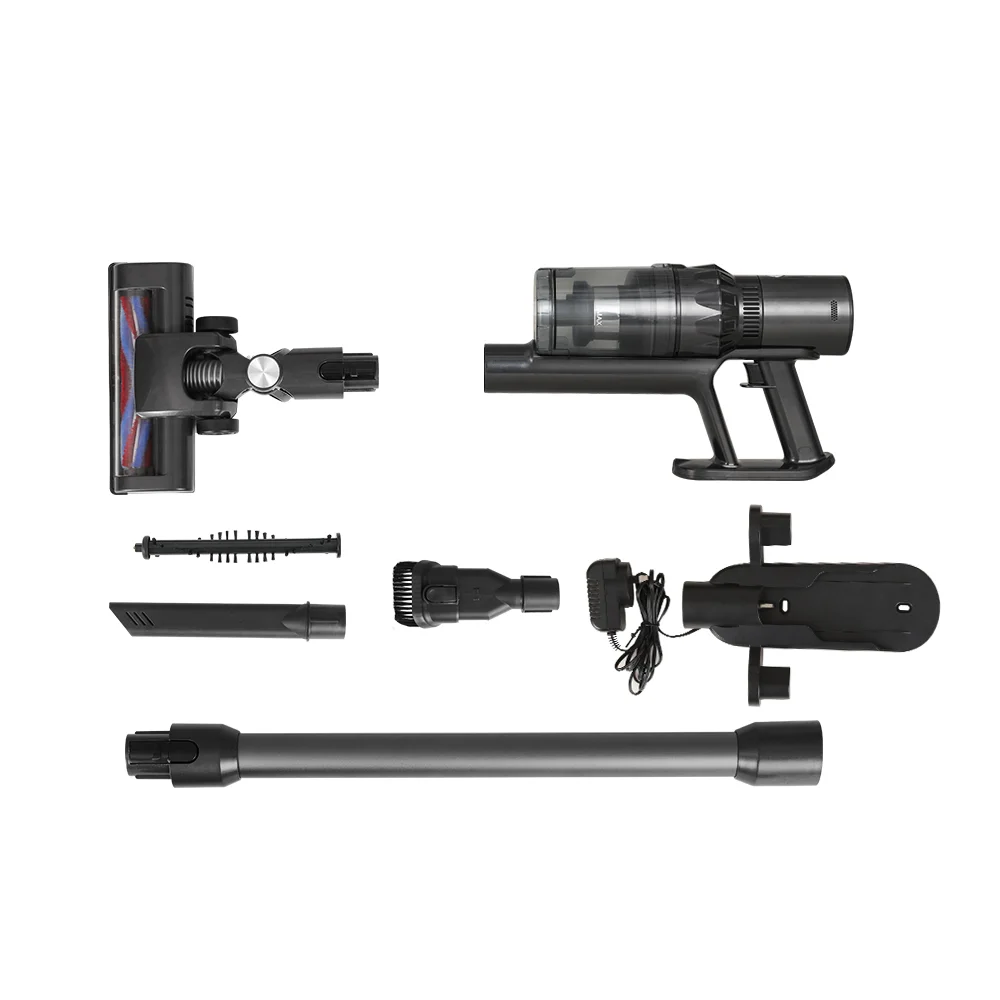 - Includes sofa brush, long crevice brush, and wall-mounted holder