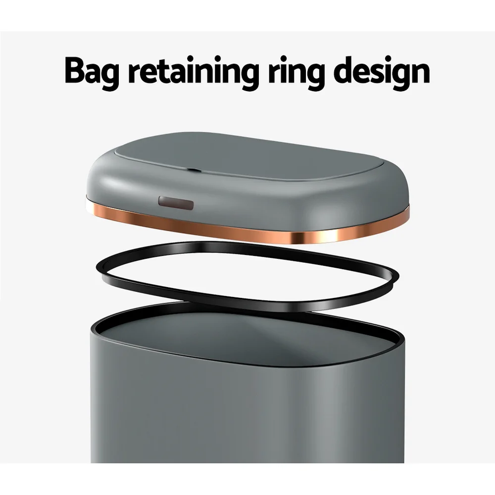 Devanti 38L Motion Sensor Rubbish Bin - Grey Steel, Fingerprint-Resistant, Hands-Free, Noise-Free, Soft Close