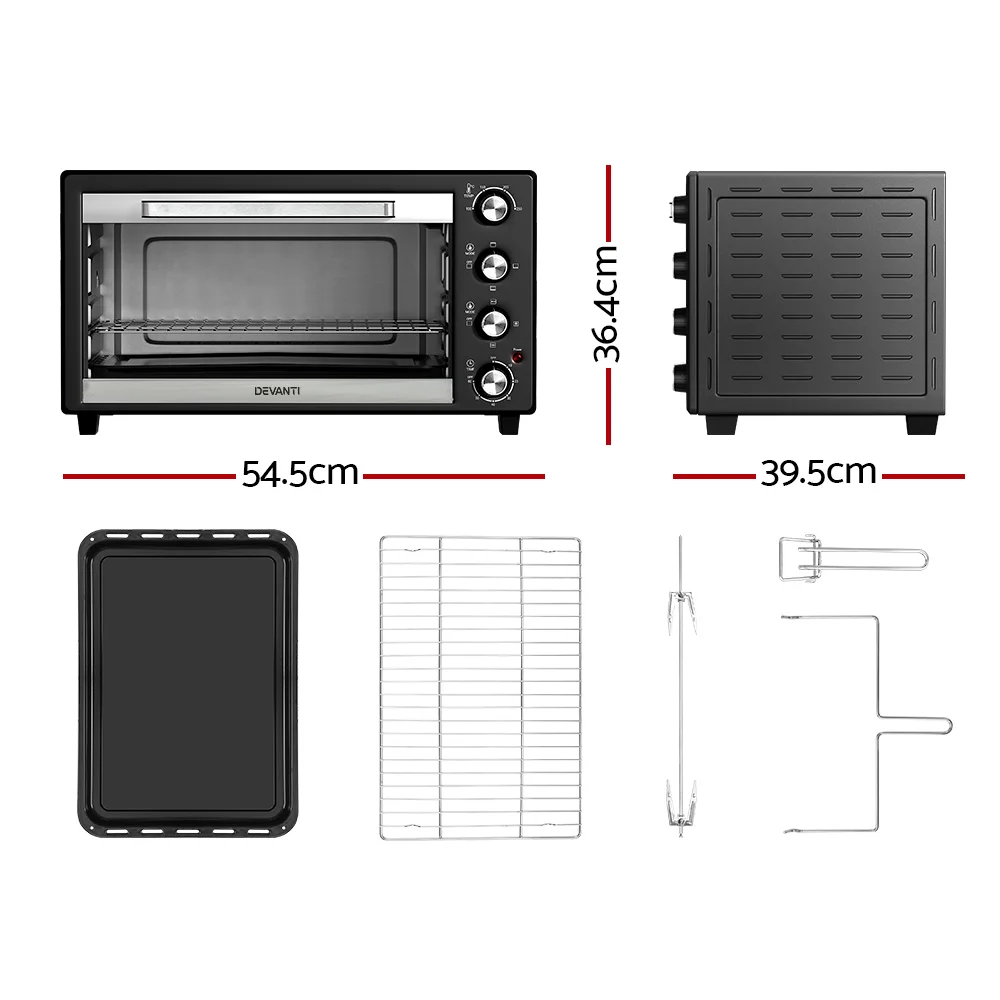 Devanti 45L Electric Convection Oven 1800W Stainless Steel Multi-Function Portable Oven with Rotisserie & Timer