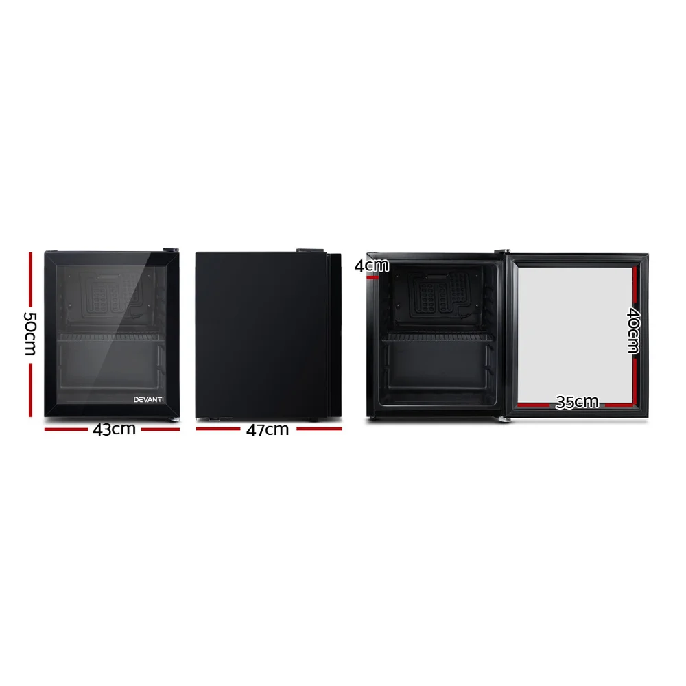 Devanti 46L Bar Fridge, Glass Door Black - Compact, Energy-Efficient, 5 Settings, Eco-Friendly, Adjustable Shelves