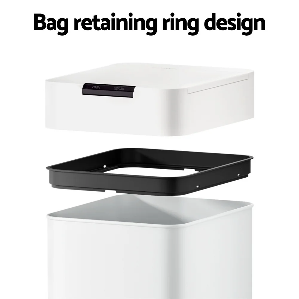 Devanti 58L Motion Sensor Bin - White Steel, Fingerprint-Resistant, Hands-Free, Soft Close, Noise & Odour-Free