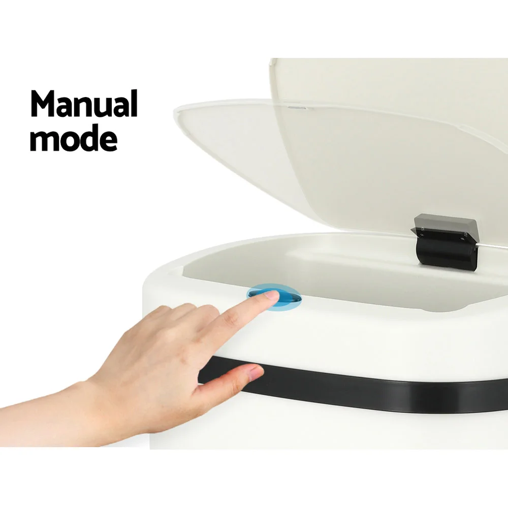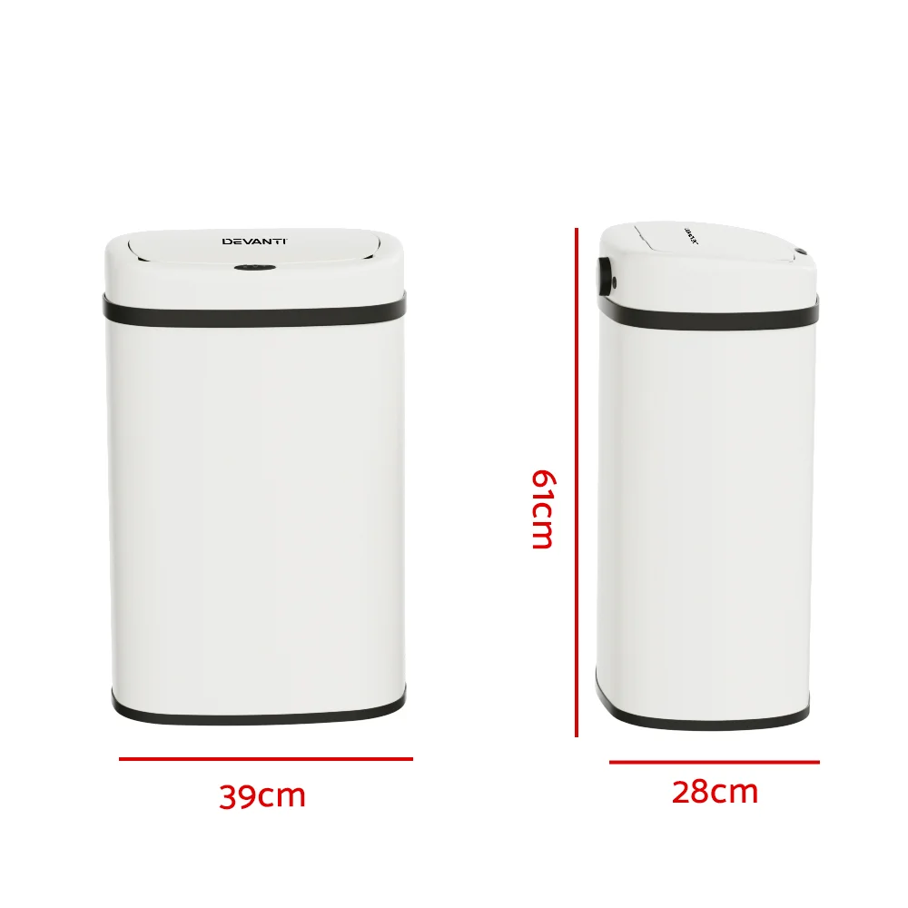 Devanti 45L Motion Sensor Bin in White - Hands-Free, Fingerprint-Resistant Steel with Soft Close & Manual Option