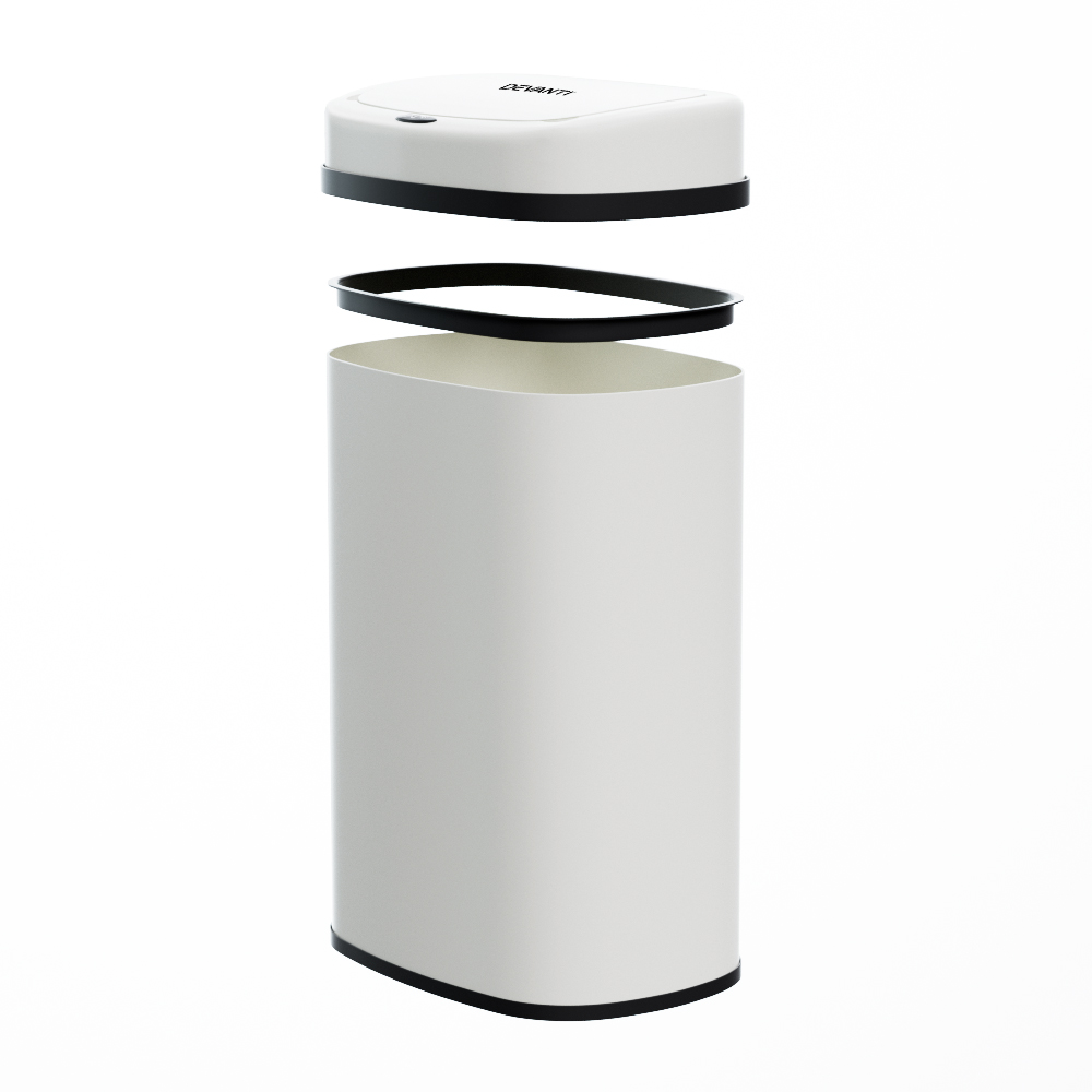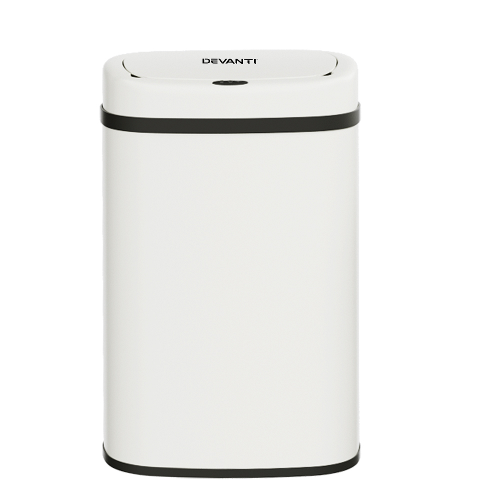 Devanti 50L Motion Sensor Bin - White Steel, Hands-Free, Odour-Free, Noise-Free, with Soft Close & Liner Holder