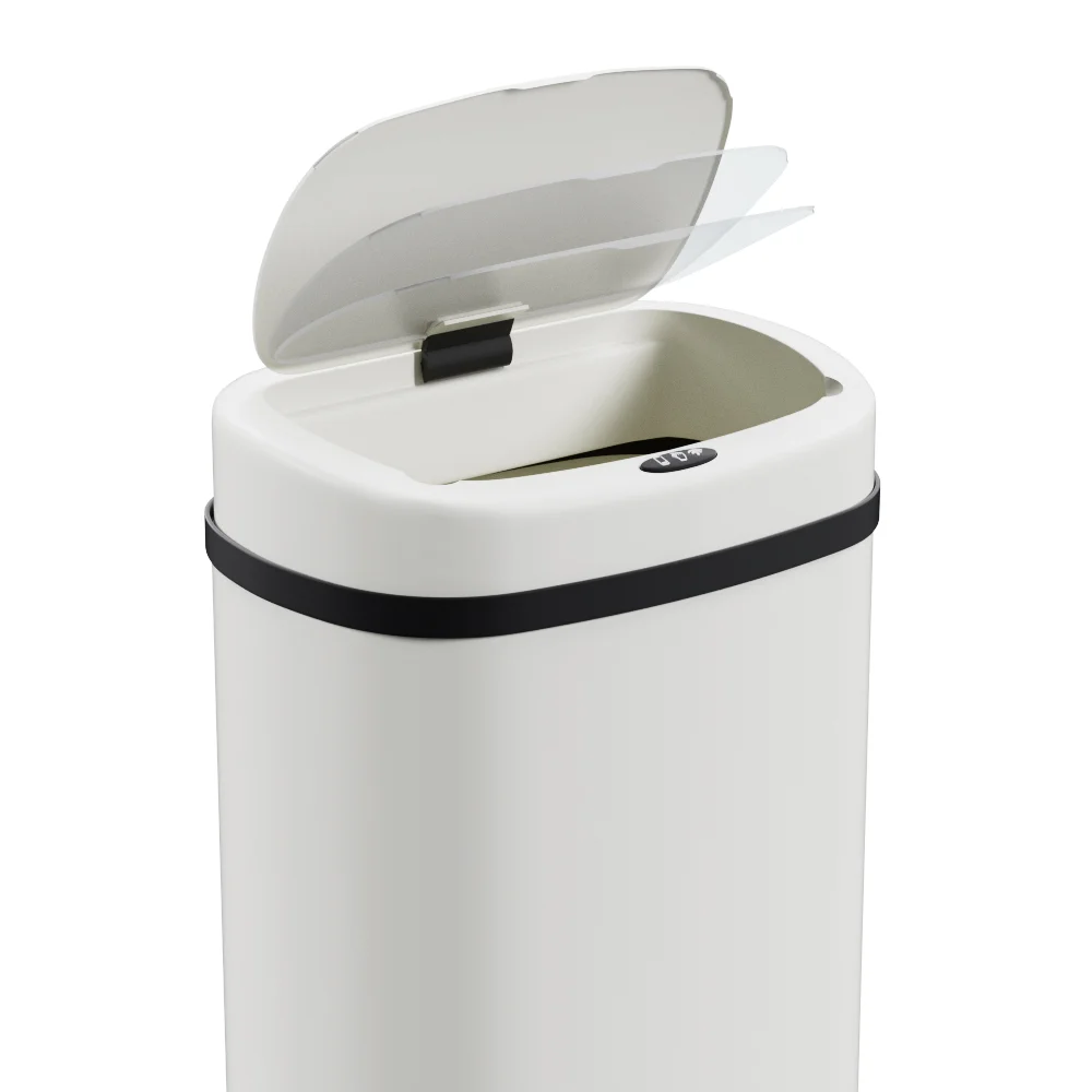 Devanti 58L Motion Sensor Bin - White Steel, Fingerprint-Resistant, Hands-Free, Soft Close, Noise & Odour-Free
