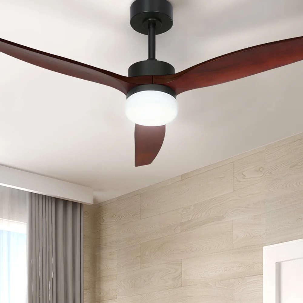 Devanti 52" Ceiling Fan with AC Motor, 3 Wooden Blades, LED Light, Remote, 3 Speeds, Quiet, Indoor/Outdoor Use