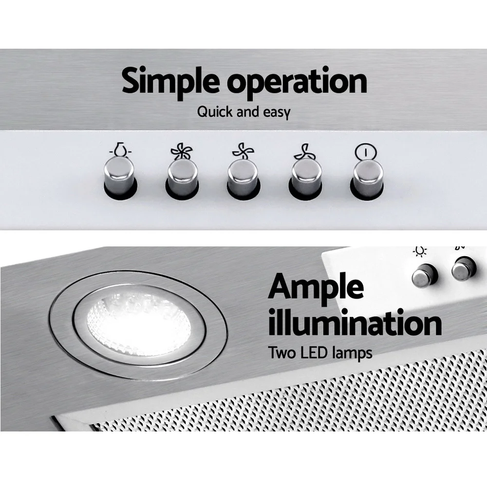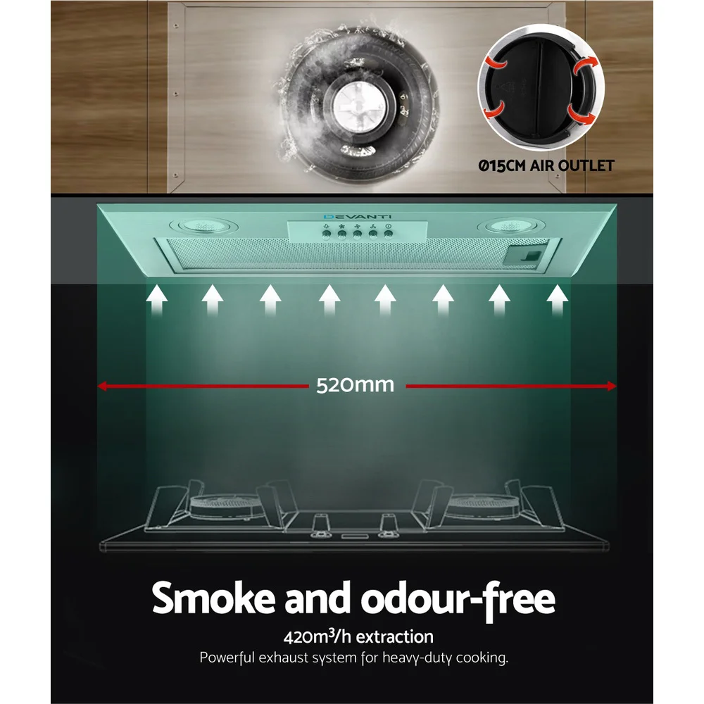 Devanti 520mm Stainless Steel Undermount Range Hood 420m³/h Extraction 3-Speed Fan LED Lights