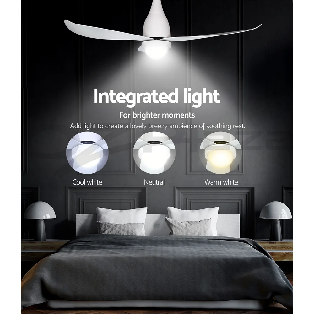 Devanti 52'' White Ceiling Fan with DC Motor, LED Light, Remote Control, 6 Speeds, Quiet Operation, Energy Efficient