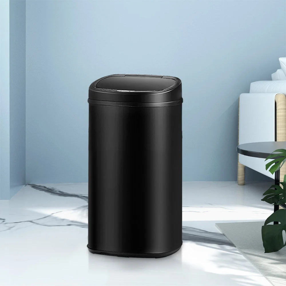 Devanti 50L Motion Sensor Rubbish Bin Black Stainless Steel Touchless Automatic Kitchen Waste Bin Odour-Free