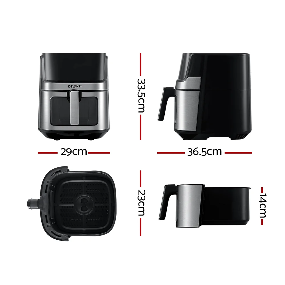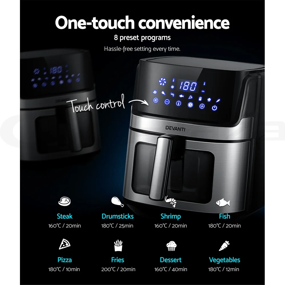 Devanti 6.5L Air Fryer with LCD Touch Panel, Clear Window, 1700W Power, Oil-Free Cooking, Dishwasher-Safe Components